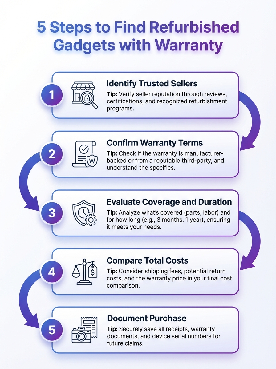 A quick visual guide to locating refurbished gadgets with an active warranty. Learn how to verify terms and choose trusted sellers.